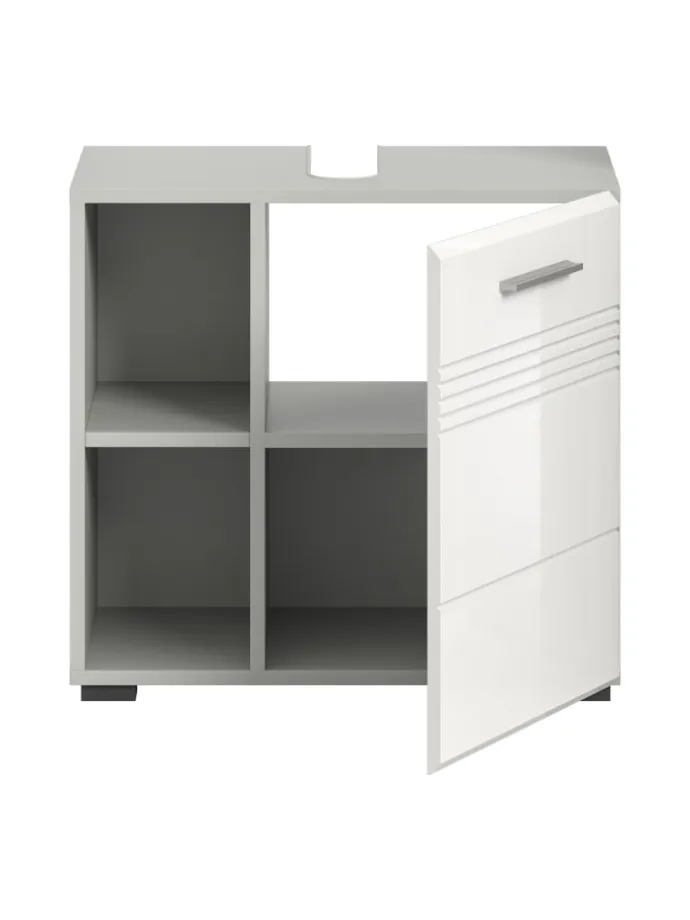 Waschbeckenunterschrank in hellgrau/weiß hochglanz – (B) 60 x (H) 56 x (T) 32
