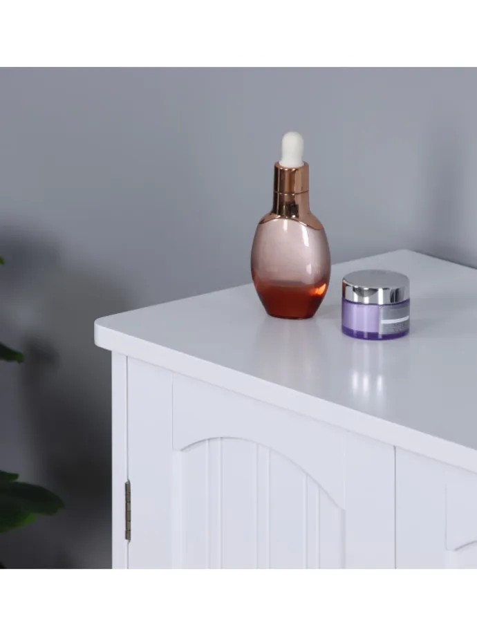 Mit diesem Badezimmerschrank nutzt Du den freien Platz unter dem Waschbecken sinnvoll aus. Vor allem in kleinen Bädern kannst Du so zusätzlichen, unverzichtbaren Stauraum schaffen. Der geräumige Innenraum des Badschranks bietet ausreichend Platz für Wasch- und Putzmittel, Toilettenpapier, Handtücher und andere Badutensilien. Das schlichte Design aus weißem MDF mit Zinkgriffen verleiht dem Unterbauschrank einen ansprechenden Look, der in jedem Badezimmer dekorative Akzente setzt.
