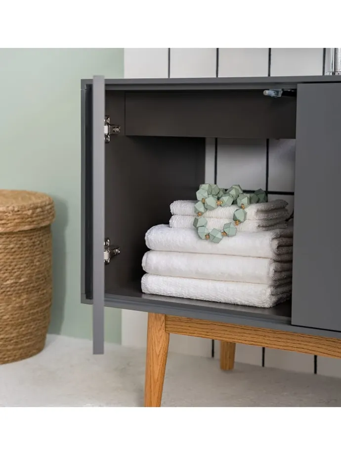 – Moderner Waschbeckenunterschrank für ein geordnetes Bad.