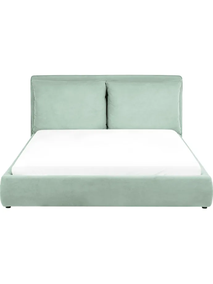 Modernes Wasserbett mit hohem, gepolstertem Kopfteil. Verleihen Sie Ihrem Schlafzimmer einen modernen, minimalistischen Look mit diesem stilvollen und komfortablen Wasserbett, das eine ruhige und einladende Atmosphäre schafft. Der strapazierfähige, pflegeleichte Samtbezug und das hohe Kopfteil sorgen für besonderen Komfort beim Lesen oder Entspannen. Dank des stabilen Holzrahmens bietet das Bett eine zuverlässige Grundlage für Ihre Matratze und garantiert einen erholsamen Schlaf.