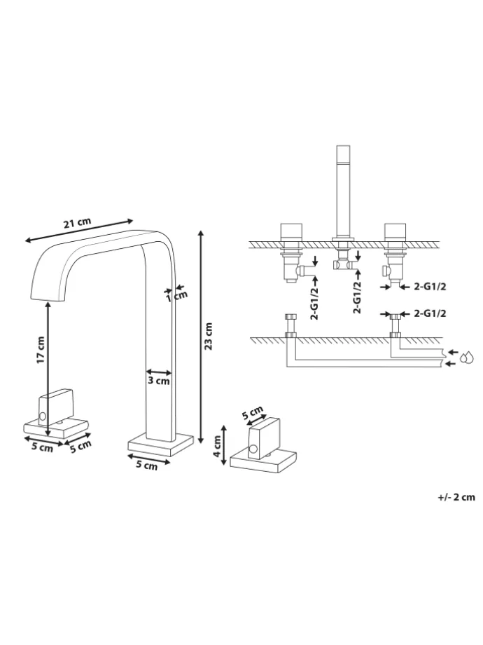 Exklusive 3-Loch Waschbeckenarmatur in geradliniger Formgebung. Diese moderne und trendige Armatur ist ein idealer Begleiter aller eleganten Waschbecken aber korrespondiert auch ausgezeichnet mit zeitlosen und traditionellen Möbeln und Accessoires. Die kantige aber gleichzeitig auch ein wenig geschwungene Form des Wasserhahns und die zwei dazugehörigen separaten Griffe verleihen der 3-Loch-Waschbeckenarmatur einen Hauch von Dekadenz und Exklusivität, die durch die Farbgebung in mattem Schwarz noch hervorgehoben wird.
