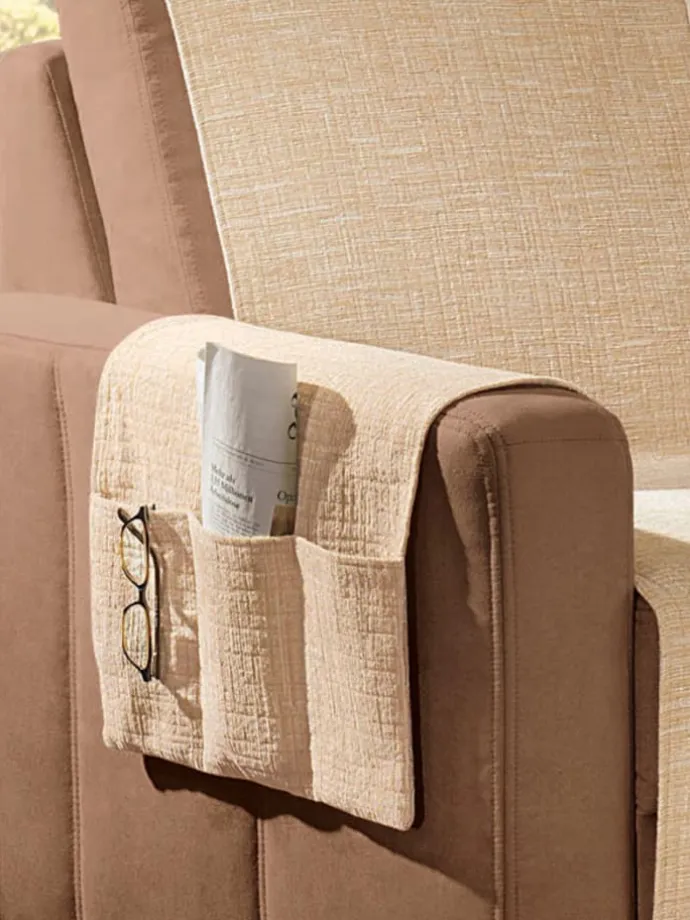 In ansprechenden Uni-Farben: Wohnprogramm in behaglich-weicher Chenille-Qualität. Armlehnenschoner 1x mit und 1x ohne Tasche.