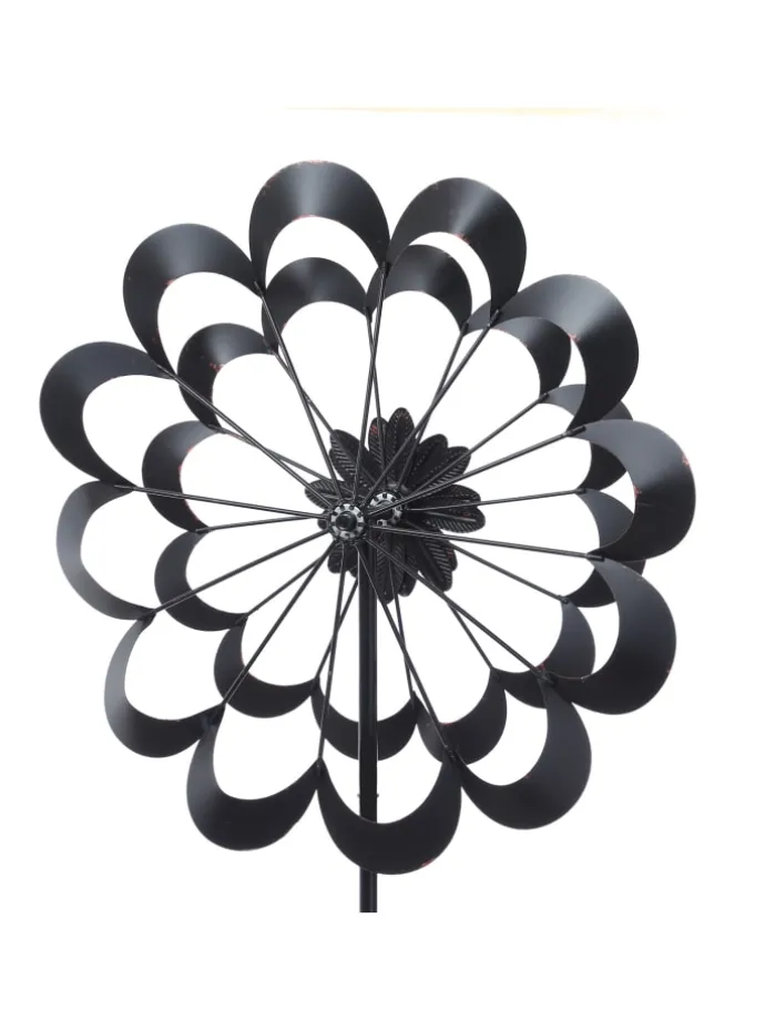 Das Windrad besteht aus stabilem Metall und ist mit einem praktischen Erdspieß ausgestattet, der einen sicheren Halt im Boden gewährleistet. Mit einer Höhe von 1,8m ist es ein imposanter Blickfang und setzt in jedem Garten ein optisches Highlight.